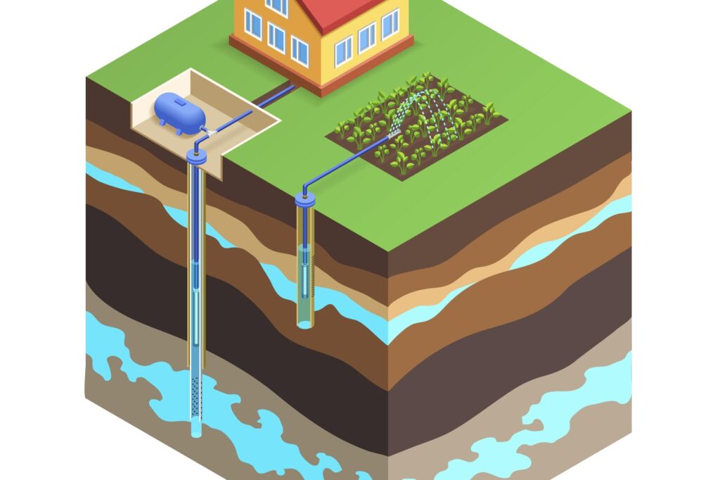 Aquifer. An underground, water-bearing layer of earth, porous rock, sand, or gravel, through which water can seep or be held in natural storage. Aquifers typically hold sufficient water to be used as a water supply. Private wells tap into aquifers, and if too many wells are drilled into certain aquifers, all the wells will suffer. Water rights can regulate wells based on how much water is available both underground and on the surface.